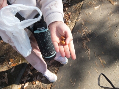 生活科の学習で、富士山公園へ木の実拾いに行きました。