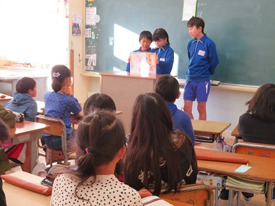 月に一度、図書委員が3、4年生に読み聞かせをしています。