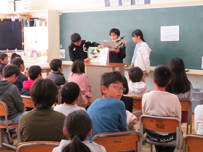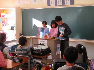 6年生の図書委員は、4年生に読み聞かせをしました。