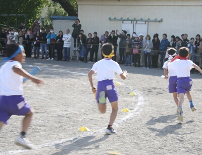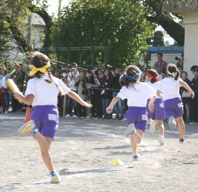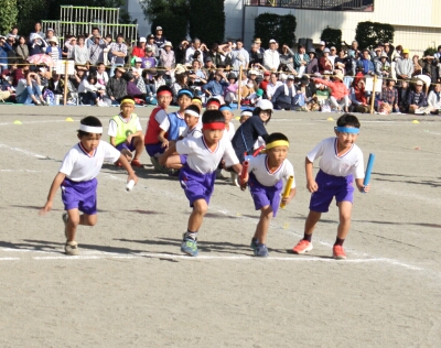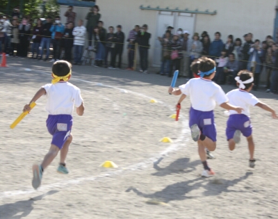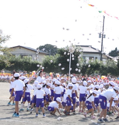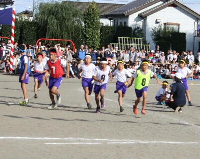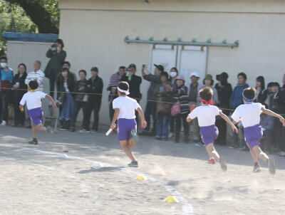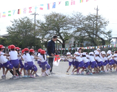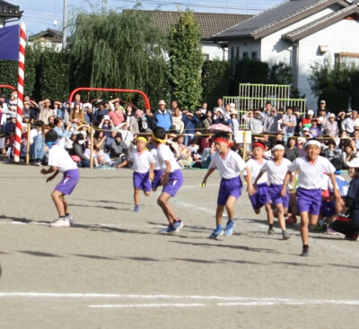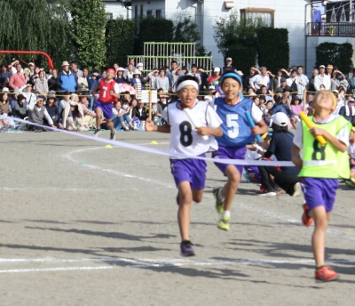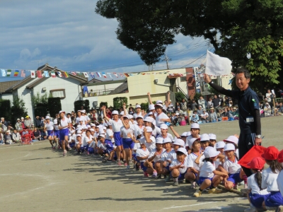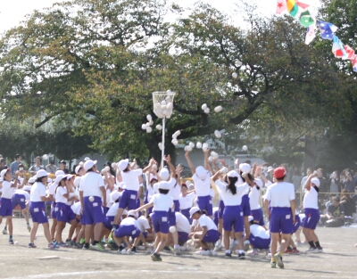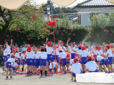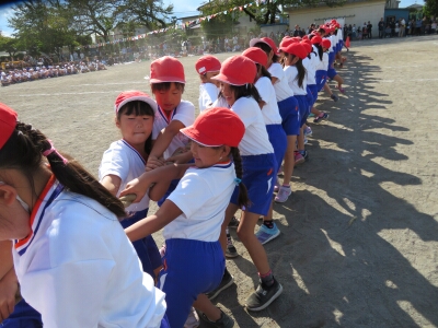 学校団体競技は、代表児童による、玉入れ・綱引き・紅白リレーの3種目を行いました。