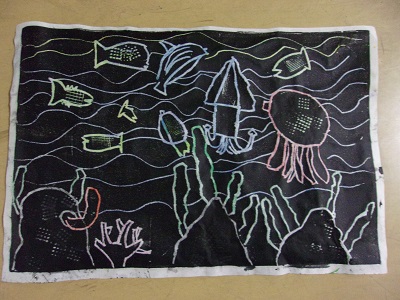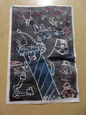 3年生では、12月に版画をしました。