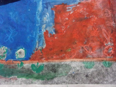 作品の裏から絵の具をのせると・・・