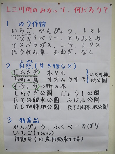 役場から、パンフレットをいただき、それを中心に、町のことを調べ、クラス全体でまとめました。
