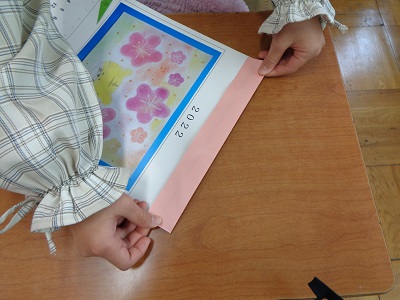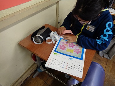 4年生の担当は、ボランティアの方にプレゼントするカレンダーの仕上げです。