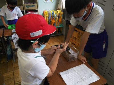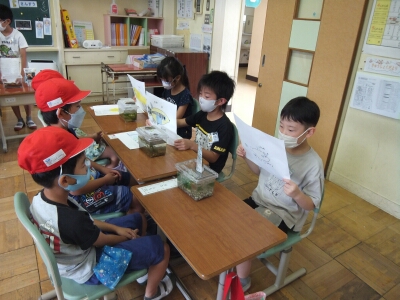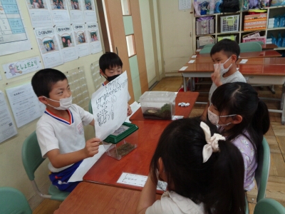 生きものランドでは、2年生が生きものについて調べたことを発表したり、生きものものクイズを行ったりしました。また、2年生が飼っている生きものを紹介しました。