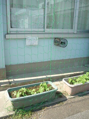 つるを絡ませて、グリーンカーテンにしていこうと思います。