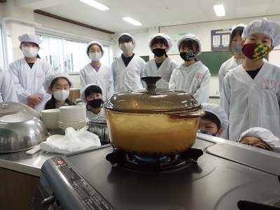 家庭科の学習では、電気やガス炊飯器ではなく鍋を使ってご飯を炊きます。