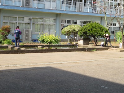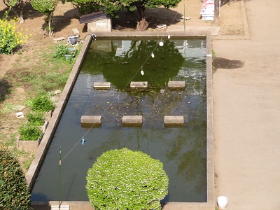 4月半ばの中庭の池の様子です。