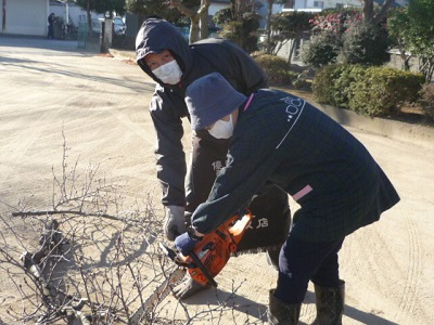 今年度「学びと体験の学校緑化活動推進事業」として、古い枝の伐採とチェンソーの使い方を教えていただきました。