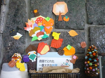 11月も玄関にかわいらし折り紙がたくさん飾られていました。