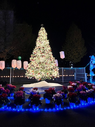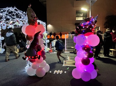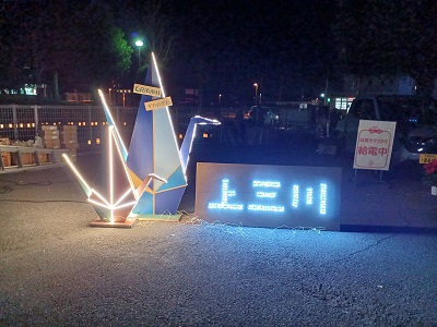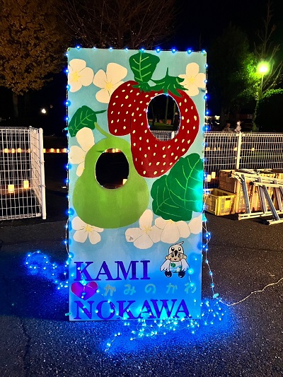 昨年度、本校児童が作成した顔出しパネルもライトアップされていました。