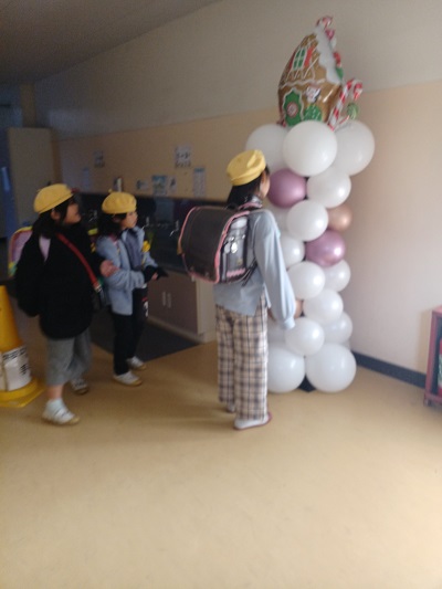 商工会女性部の方のご厚意で、バルーンサンタの飾り物を学校に寄附していただきました。