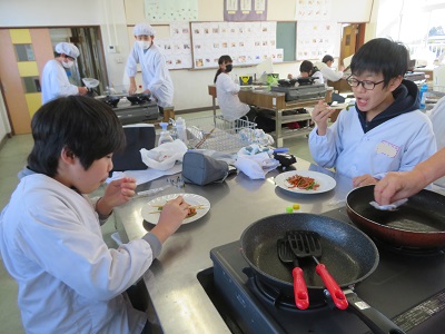 今回は、一食分の献立を考え、その中の主菜を一人で作る調理実習です。