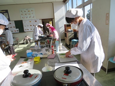 食改善推進員さんのお陰で今回も、安全に、そして時間内に調理実習をすることができました。