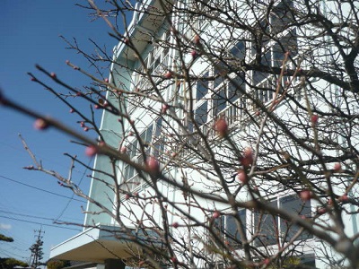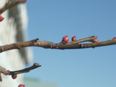 校庭の寒梅もつぼみを付けています。