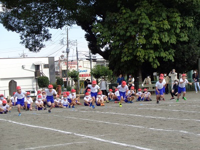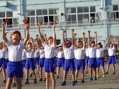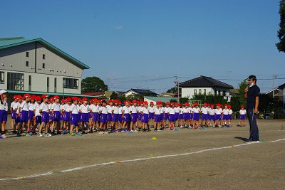 始めに、校長先生からお話があり、いつものように「がんばるぞー オー!!」と、気合いを入れてもらいました。