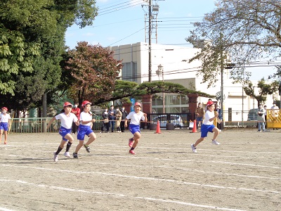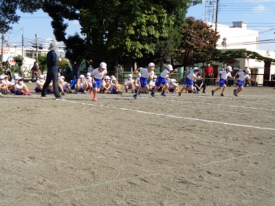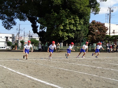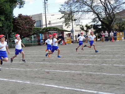 はじめの競技は、3年生の徒競走「上小を駆ける」です。