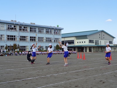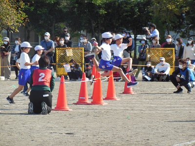 4年生は障害走「とんで、とんで、まわ~る~~♪」です。