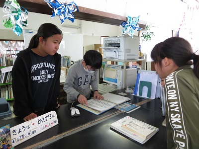 まだ、新しい委員会が決まっていなかったので、昨年度図書委員だった6年生が貸出作業をしてくれました。