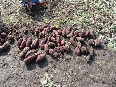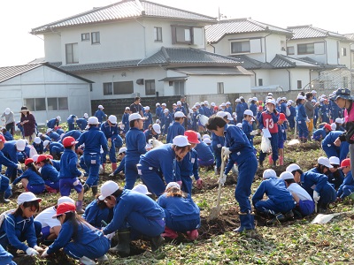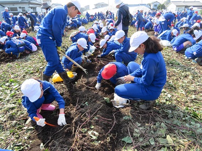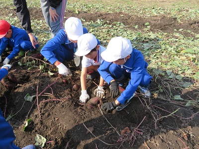 なかよし班のみんなで、自分たちが植えた畝の芋掘りをしました。