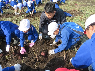 6年生は、大きなお芋を見つけると、1年生や2年生に掘らせてあげていました。