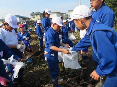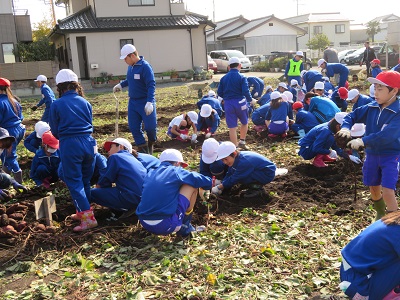 収穫祭の焼き芋用の芋は、今日(11/4)濡れた新聞紙で包み、さらにアルミを二重に巻いて明日(11/5)学校に持ってきてください。