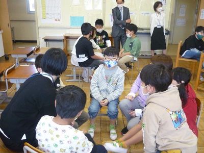かがやき学級は、始業式の日に3年~6年生が集まって顔合わせをしました。