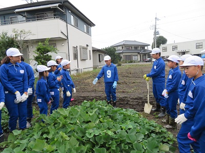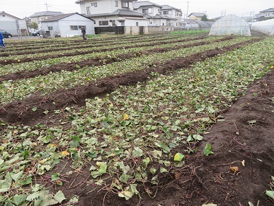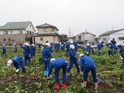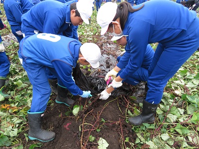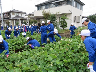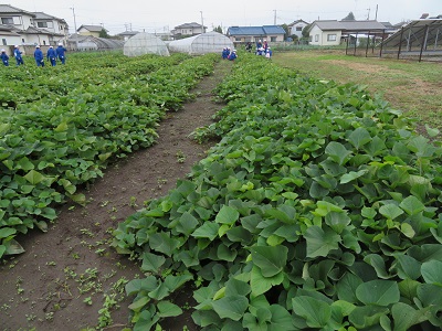 芋掘りができるように、4~6年生が、つる切りを行いました。