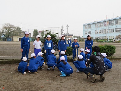 学校に戻ると、6年生からつる切りと芋掘りについて振り返りをしました。