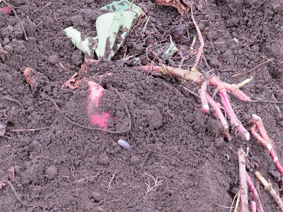 切ったつるは、15cmほどに細かくして、通路に平らに置きます。