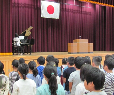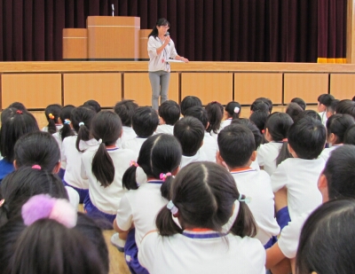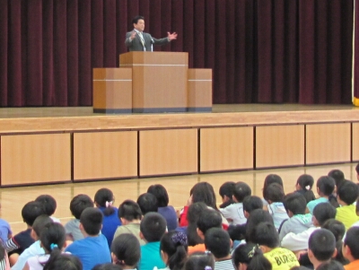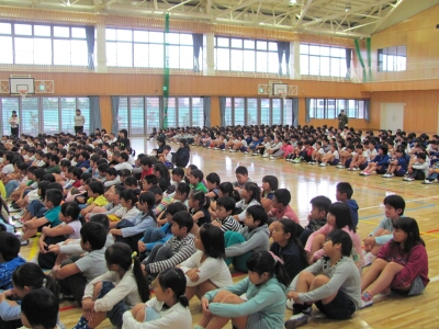 つ目は、『めあてをもつ』ことです。「○○をしたいです。」ではなく、「○○をしたいから、△△をする。」というように、具体的な目標を立ててほしい。2つ目は、『振り返りをする』ということです。めあてを達成できたかを確認し、達成できたら新たに高いめあてにしよう。2学期は学年のまとめになりますので、めあてを立てて、頑張りましょう。