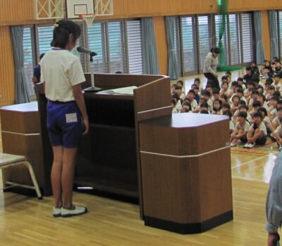 3年生と6年生の代表児童が、2学期の抱負を発表しました。