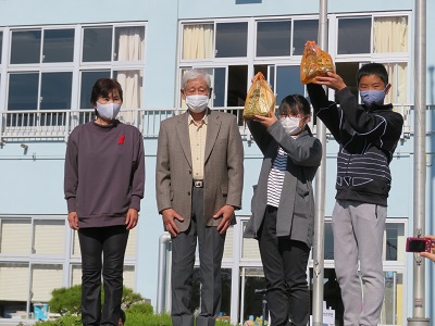 青空の下、令和3年度の収穫祭が行われました。