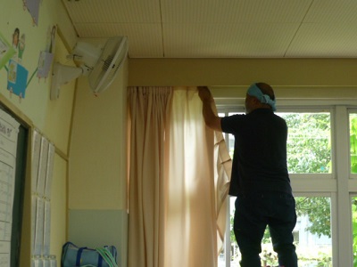 正解は教室のカーテンをクリーニングに出すため、部屋ごとにまとめているところです。