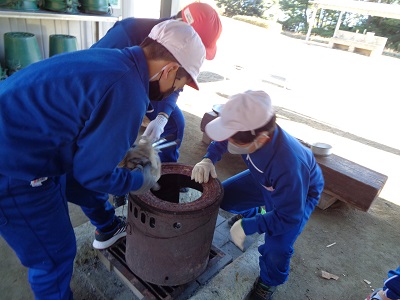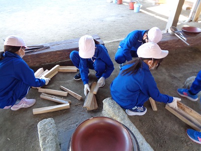 こちらは、塩作り・つぼ焼きいもです。海に塩水を取りに行くところからスタートです。