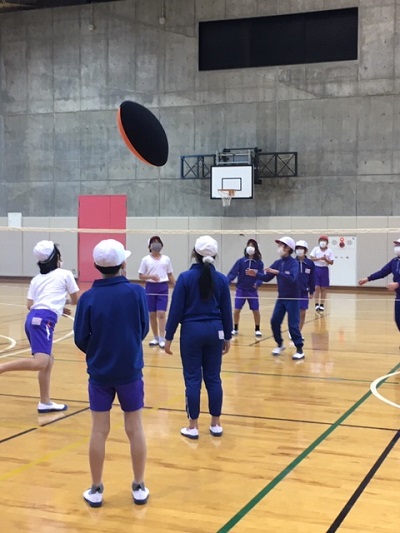 まずは、ニュースポーツ。定番のドッチービーは、安定の楽しさです。