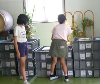 町立図書館から各クラス貸し出されていた回収箱を図書委員が集めてきました。