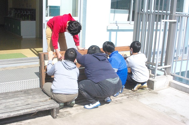さて、かがやきクラスも奉仕作業を行いました。3階の渡り廊下にあった板がボキッと折れていたので、新しい板と交換しました。これでしばらくは安心です。