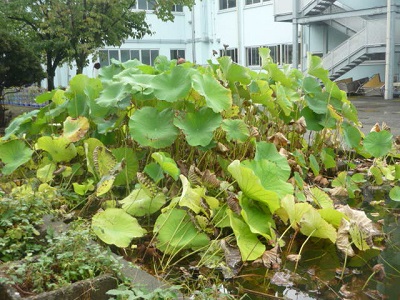 古代蓮は、少し枯れ葉が目立ってきました。