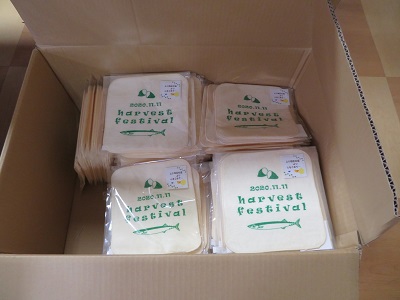 タオルは、焼き芋とサンマ、2020,11,11の日付。