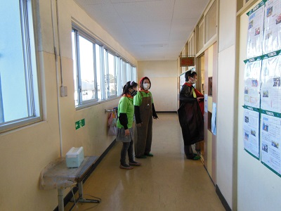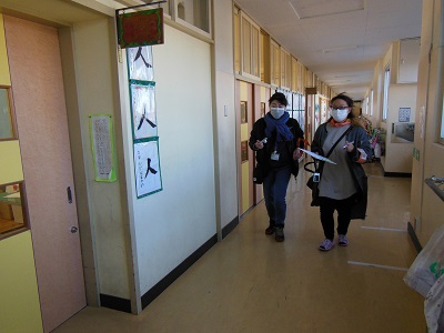 子供たちと接触しないように、先生方からプレゼントを渡す様子を廊下から見守りました。