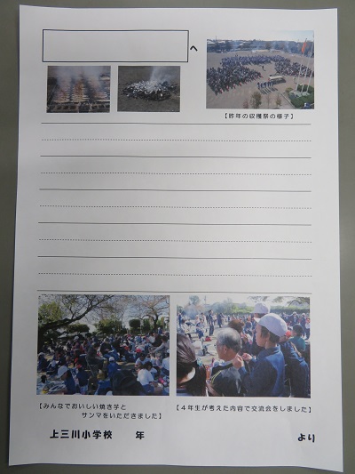 先日、各家庭に持ち帰ったおじいちゃん、おばあちゃんへのお手紙の便箋の印刷代も、地区社協からいただいている費用でまかないました。