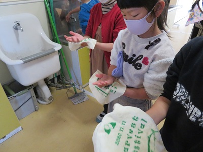 プレゼントは、子供たちが喜びそうなお菓子と新しい生活様式でたくさん手を洗うのでタオルに決まりました。