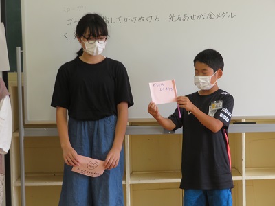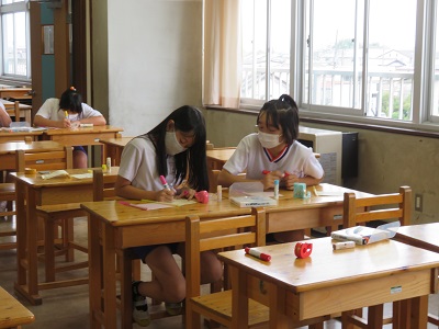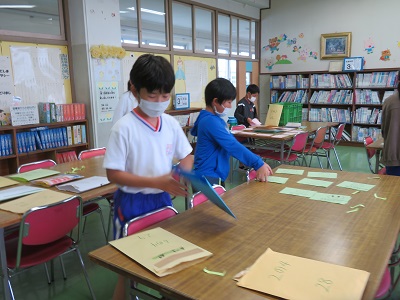 旗の紙とストローを数えて袋に入れ、各クラスに配りに行きました。