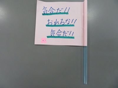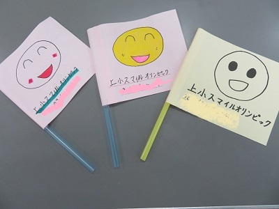 上小スマイルオリンピックを盛り上げるために、代表委員会で話し合い、一人1本、応援の旗を作ることになりました。