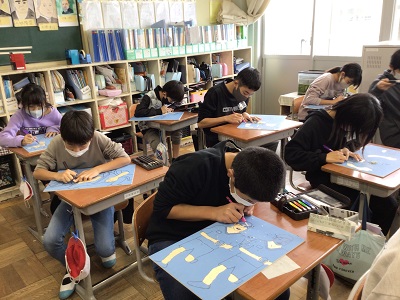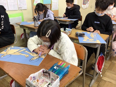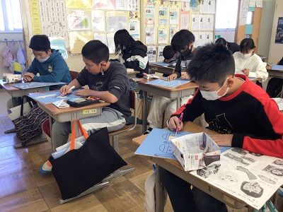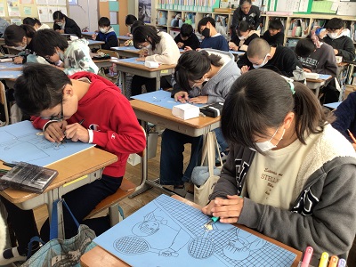 「夢中になっている自分」をテーマに、6年生は木版画に挑戦しています。