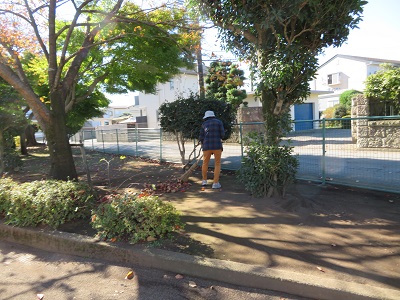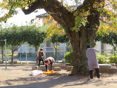 5年生とボランティアさんによる落ち葉掃きが始まりました。