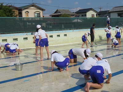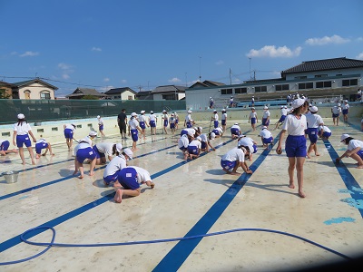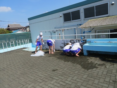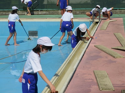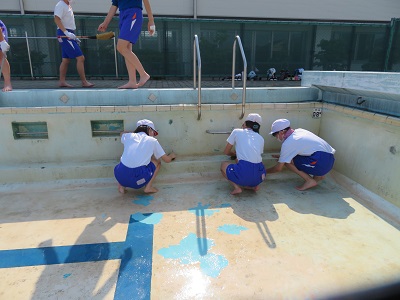 プールの隅や側溝まで、一生懸命きれいにしました。