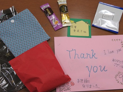 手作りのマスクケースや感謝のメッセージカードを贈りました。