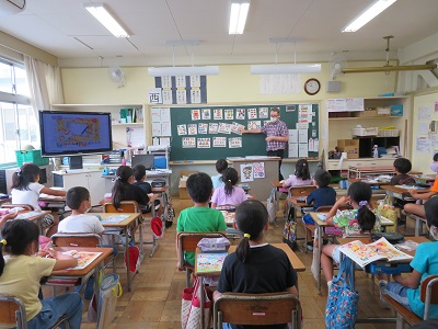 教科書を使った外国語活動が、週1時間あります。